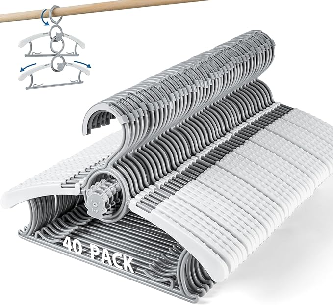 Kids Hangers 40 Pack Baby Hangers- Extendable & Adjustable Non-Slip Stackable Plastic Baby Clothes Hangers,11-14 Inch Kid Hangers for Baby Toddler Kids Children,Toddler Hangers for Cloest Grey