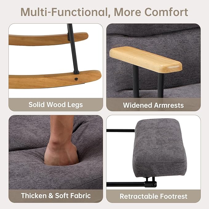 - VERSATILE & STYLISH FOR ANY ROOM: With its sleek, modern design and neutral color options—beige, green, grey, or brown—this chair is perfect for any space. Whether used as a nursery rocking chair, living room accent chair, or bedroom reading nook, it seamlessly blends style and function.