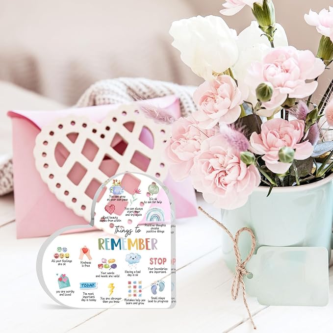 - 【Gifts for Women】This acrylic heart-shaped gift is printed with many mental health and subject knowledge content, which can help you identify your emotions and learn more. By sending this decorative sign to your friends, family or someone you care about, you can send them your warm wishes.