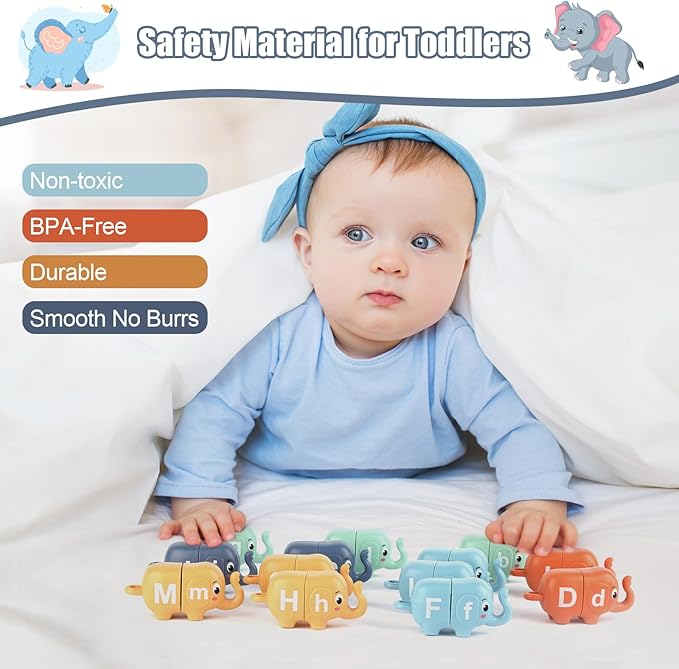 13PCS Elephant Alphabet Learning Toys for Toddlers 2-4, Toddler Preschool Learning Activities, Educational Montessori Toys for 2 Year Old, Double Sided Matching Game A-Z