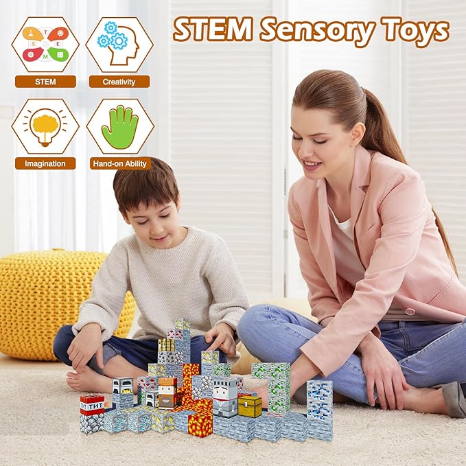 - 【STEM Montessori & Sensory Toys】Magnetic blocks provide a great learning, playing and self-confidence boost for kids, as well as giving them a better understanding of building structures. Construction and building block toys open up many skills for children. Building, rotating, destroying and rebuilding with these magnetic blocks helps promote creative thinking, concentration and patience, hand-eye coordination,motor skills, cooperative skills, and spatial and motor skills.