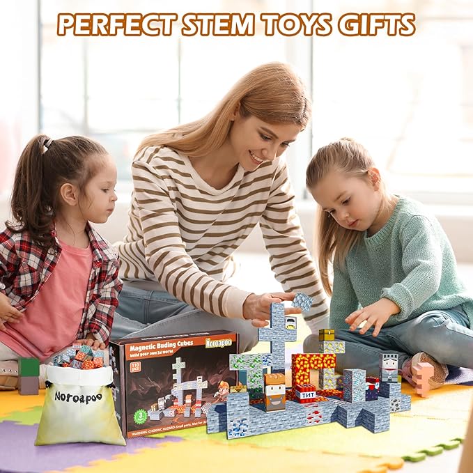 - 【Safe & Compatible Design】Noroapoo magnetic building block toys emphasize more on the quality and playability of the magnetic blocks. These magnet cubes are made of high quality ABS plastic with rounded, sealed edges and a stable structure that prevents the magnets from breaking or being swallowed. The magnets cubes are appropriately sized and safe for small hands to play with.