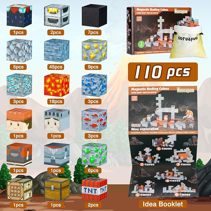 - 【Exciting MAGIC PORTAL WORLD】Embark on thrilling quests with our 110 pieces Magnetic Building Block Set and experience an exciting portal adventure!Kids can build their own 3D magnet world with using these variety envouriments such as snowman ,ice cube,trees and others.From simple to challenging builds,experience the fun of role-playing.Our magnetic open-ended toys set lets kids play with their imagination!