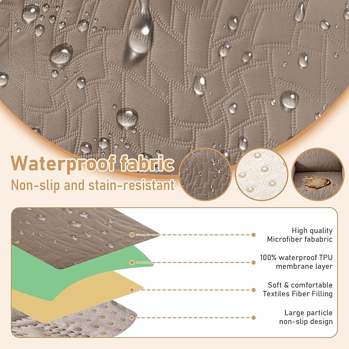 - 100% Waterproof Protection: The top of the recliner covers is coated with a waterproof layer, complemented by a TPU waterproof layer in the middle, offering a dual defense system to ensure 100% waterproof and leak-proof functionality. This innovative waterproof feature serves as a shield to safeguard your recliner from any spills, liquid mishaps, and daily wear.