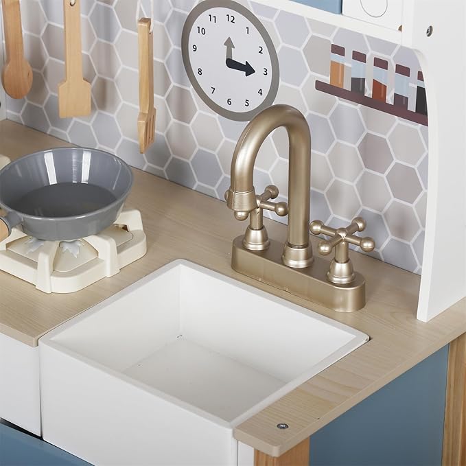 - 🎁Geat gift- Not only provides fun playtime for young children, but is also important for education. The perfect play kitchen for 3-8 year olds is ideal for creative role play toy and the perfect gift for kids.