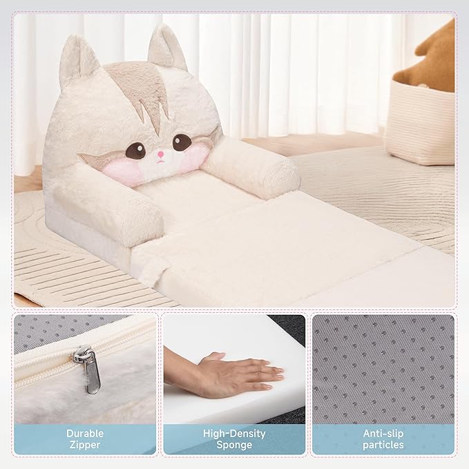 MONKISS 2-in-1 Toddler Couch Chairs Comfy, Kids Chair Couch, Mini Couch, Flip Out Sherpa Kids Sofa, Baby Couch, Chair for Toddlers 1-3, Kids Lounge Chair Reading Chair, Kids Couch Bed Fold Out, Cat
