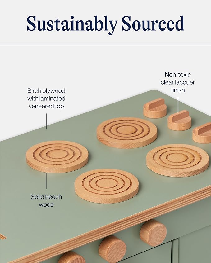 Lalo The Play Kitchen - Tool-Free Assembly, Toddler Kitchen Playset with Interactive Knobs & Doors, Safe for Kids 3+, Promotes Open-Ended Play, Wooden Play Kitchen, Made from Birch Wood - Sage