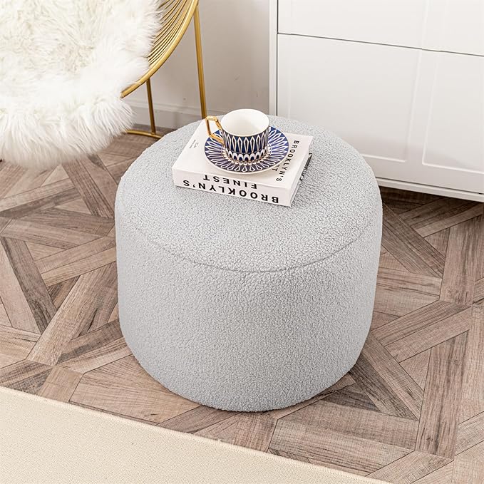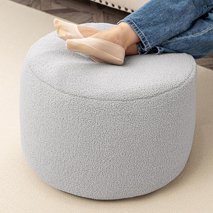 Round Pouf Ottoman 20 x 20 x 14 Inches Boho Poof Home Decor Floor Pouffe Ottoman Foot Rest for Couch Sofa Bean Bag Ottoman Chairs Living Room Bedroom Quiet Grey