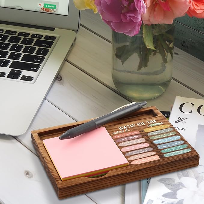 - 【Sticky Note Holder Gifts】: The Self-Stick Note Pad Holder for the desk isn't just Sticky Note Holder; it's also a Inspirational gifts (NOT INCLUDED Post-it Note and Pen).