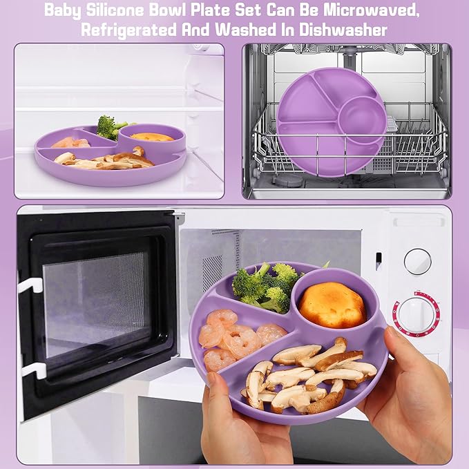 • Manage Baby Dish Set: The plate have suction points at their bases to help them stay secure on top of high chair trays, tables, and countertops. Effectively preventing your baby from throwing or tipping over the plate & bowl and making a mess