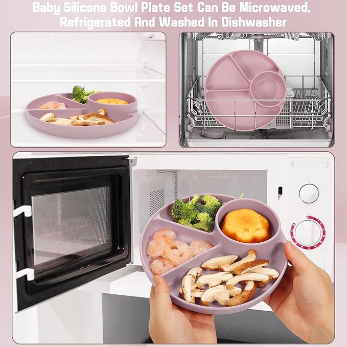 - Manage Baby Dish Set: The plate have suction points at their bases to help them stay secure on top of high chair trays, tables, and countertops. Effectively preventing your baby from throwing or tipping over the plate & bowl and making a mess