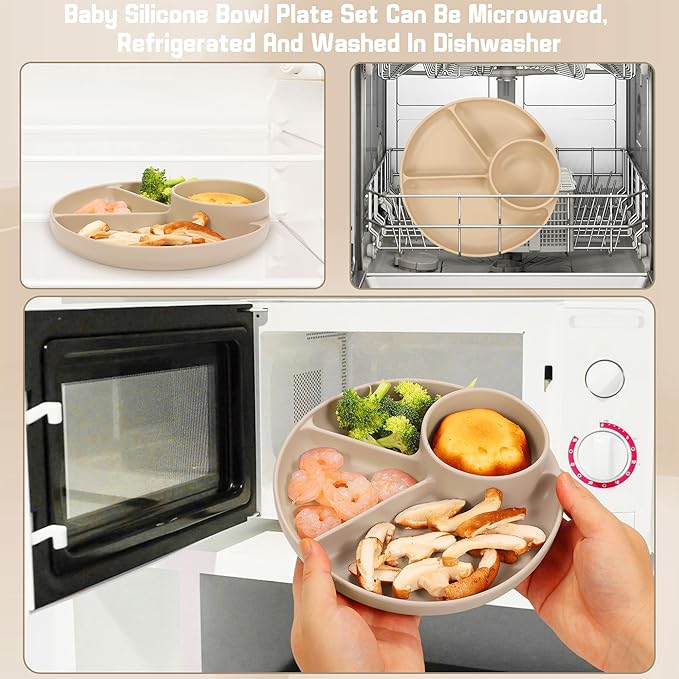- Manage Baby Dish Set: The plate have suction points at their bases to help them stay secure on top of high chair trays, tables, and countertops. Effectively preventing your baby from throwing or tipping over the plate & bowl and making a mess.