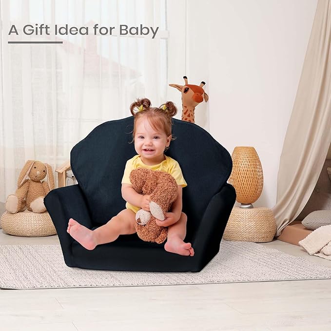 COSYLAND Kids Sofa for Toddler, 2-in-1 Folding and Expandable Soft Chair Bed Toddlers,Convertible Sofa to Lounger Sleeper Chair Bed for Girls and Boys,Black