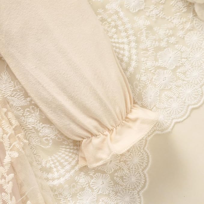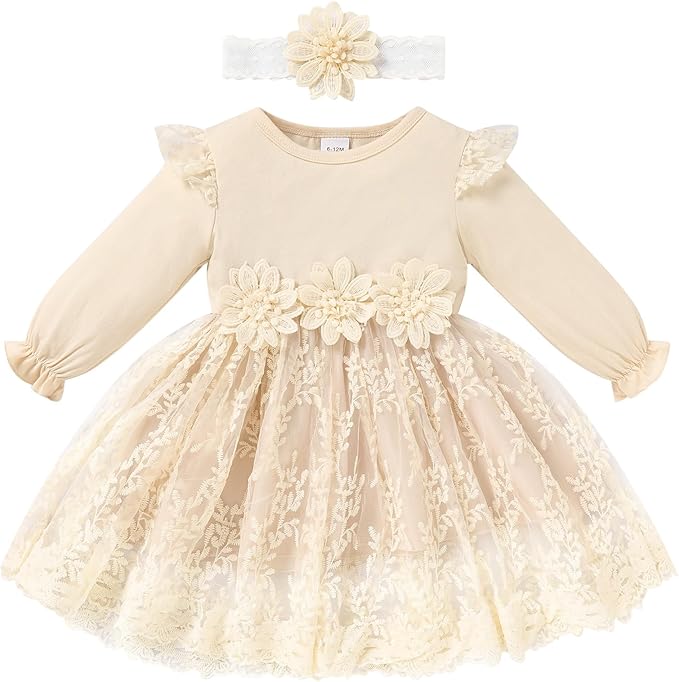 - Elaborate: Cute toddler girl tulle dress in flowing tulle design, ruffled long sleeves, classic crew neck, soft lining with three three-dimensional flowers and delicate flower kerchief. Wearing it will make your little princess more cute and charming.