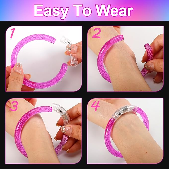- Easy to Use: You only need to press the button lightly and the light up toys will flash. You can place this led bracelet anywhere, on wrists, arms, or even on child's ankles.