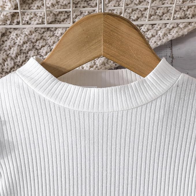 - Appearance: Solid color,long sleeve,ribbed design,turtle neck,t-shirt tops,matching with plaid plead skirt,2pcs dress outfits clothes,make your little one more adorable and fashionable.