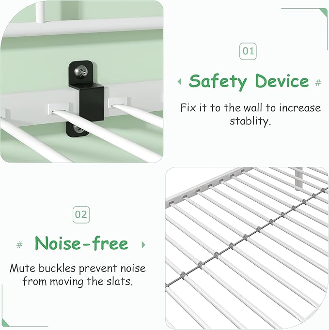 - 【Robust and Stable】With its sturdy metal frame construction and extra ANTI-TIPPING accessories, this bunk bed is very strong and stable and prevents excessive shaking. And the plastic buckle design can fasten the slats firmly to prevent the noise from moving slats.