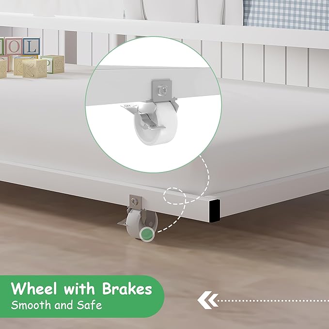 - 【Maximized Space】This bunk bed with trundle occupies a small footprint to maximize space-saving, and the trundle with rollers can be placed under the bed when not in use to save space.