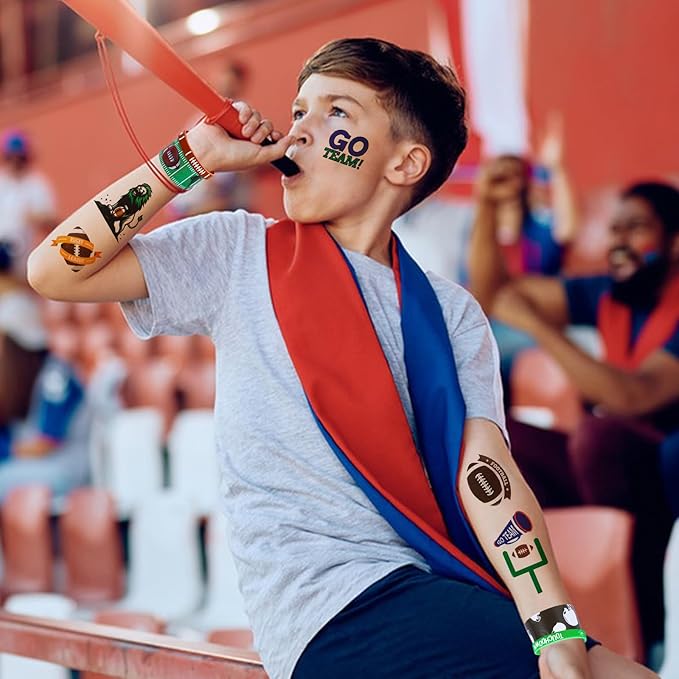 - SATISFACTORY COMBINATION - Each football party favors package with 20 awesome football silicone bracelets, 20 football slap bracelet, and 20 sheet football tattoo. We're all about celebrating the love of football, and we want everyone to show off their personality in style on their elbow or wrist!