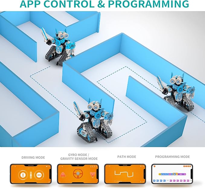 - Multi-Control Options: Take playtime to the next level with dual control options - remote control and a feature-rich mobile app. Maneuver the rc robot effortlessly with four channels of control - front, back, left, and right, and stun onlookers with impressive 360° rotations. The APP also has a variety of ways to play the Robot, such as gyro, driving simulation, navigation path, STEM programming. Let kids explore more fun gameplay in the App