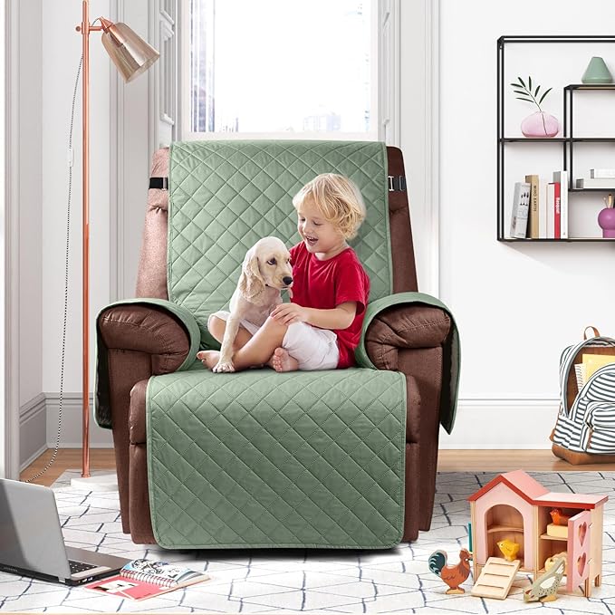 KinCam 100% Waterproof Recliner Chair Cover, Reclining Couch Covers for Pets, Dogs, Recliner Couch Slipcover Furniture Protector with Elastic Straps for Kids(23.6", Sage Green)
