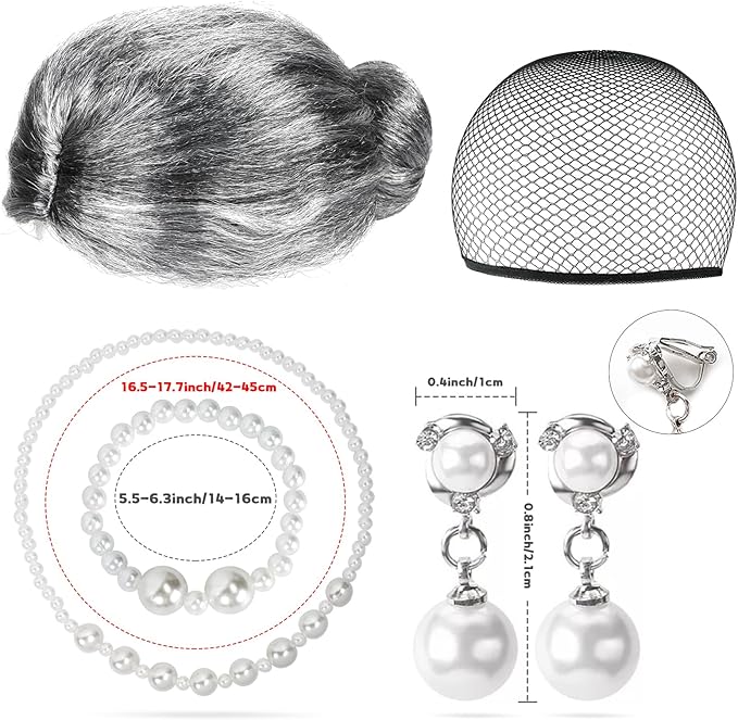 - Easy to Put On and Remove: This old lady costume set is easy to wear,allowing your child to get dressed up in minutes. All accessories are designed to be kid-friendly, with clip-on earrings and a simple necklace clasp for convenience