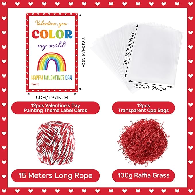 • Package Includes: you will receive 12 sets of Valentine mini paint including 12 mini canvases, 12 mini easels, 12 paint trays, 12 paint brushes, 12 plastic bags, 12 Valentine's Day theme cards, 1 rope, and 100g red raffia paper filaments, you can painting at canvas as a gift to express your love