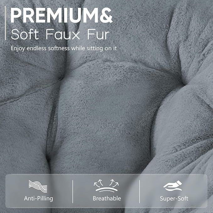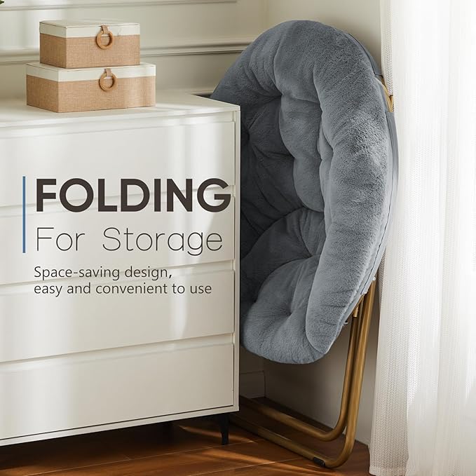 DUMOS Comfy Saucer Chairs, Faux Fur Lounge Bedroom Living Room Flexible Folding Seating for Kids Adults Soft Padded Metal Frame Modern for Home Office Grey