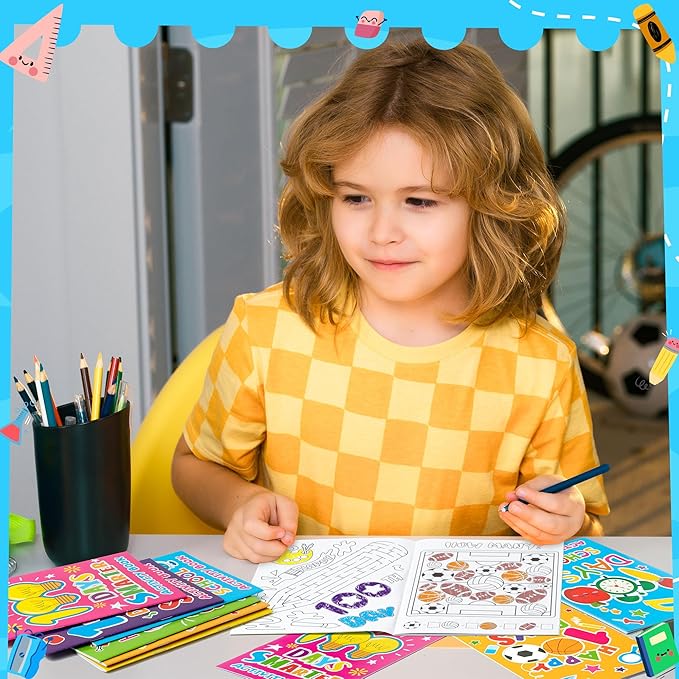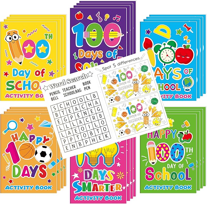 - What You Get: The pack contains a set of 24 100 days of school-themed mini-game activity books. It includes 6 different styles. Each activity book has 10 sheets, a total of 20 pages, including 20 different games to ensure children have fun learning in the classroom.
