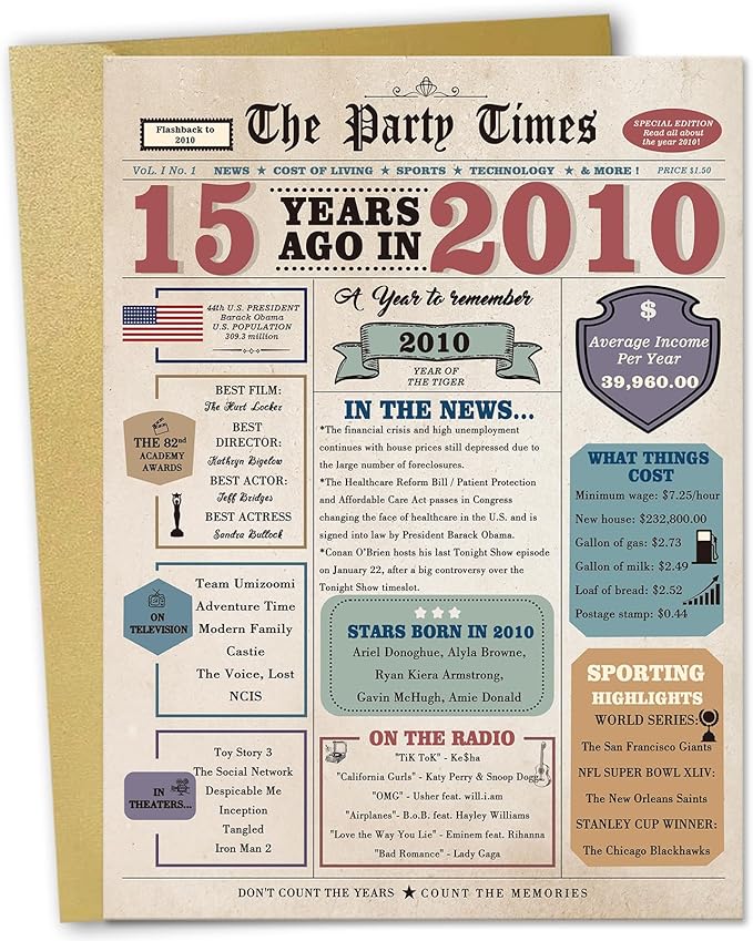 15th Birthday Card, 15 Year Old Birthday Gift for Daughter Son, Retro 15th Birthday Decorations for Boys Girls