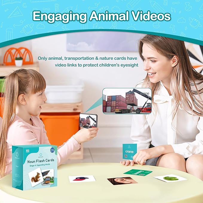 - 【Engaging Interactive Video Links】Some flashcards feature scannable QR code video links that bring objects, like transportations, animals, to life with movement and sound, making them great toys that encourage speech and best gifts for kids with autism. These hi-tech talking flash cards for toddlers 2-4 help children understand and apply concepts more deeply.