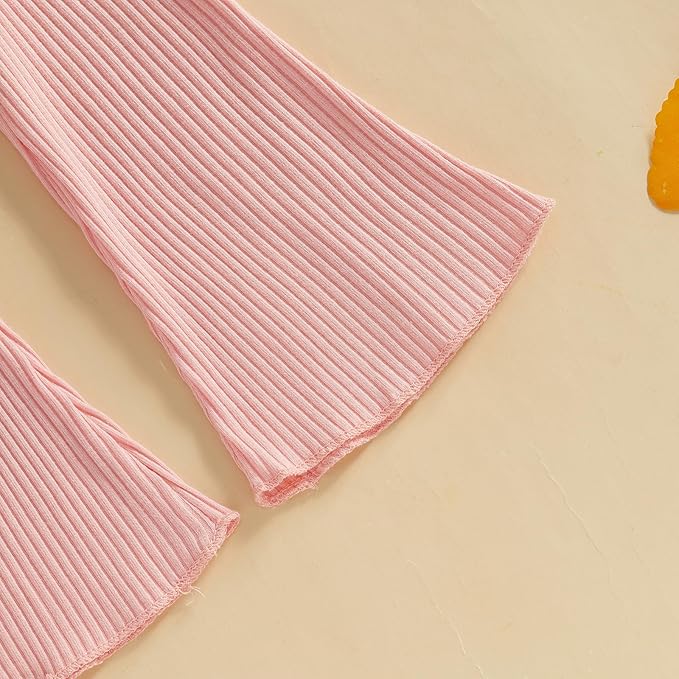Mubineo Toddler Baby Girl Clothes Cute Ribbed Outfits Knit Long Sleeve Shirt Tops Bell Bottom Pant Fall Winter Outfit