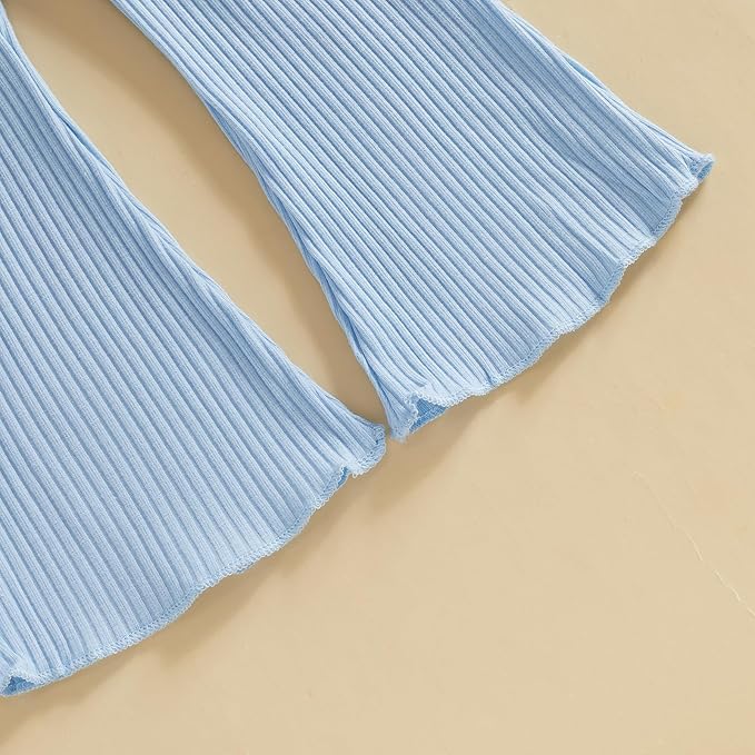 Mubineo Toddler Baby Girl Clothes Cute Ribbed Outfits Knit Long Sleeve Shirt Tops Bell Bottom Pant Fall Winter Outfit