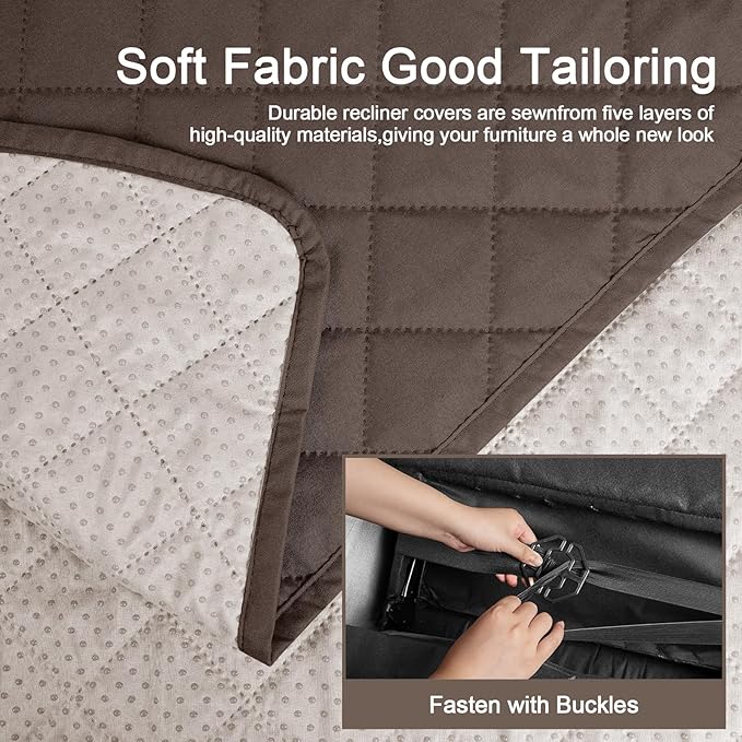 - 100% Waterproof & Comfortable: (This Recliner Couch Cover is Patented) KinCam recliner chair cover is made of high quality 100% waterproof polyester, which inner layer is filled with durable fabric, feel very cool to touch, comfortable and durable