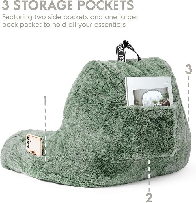 Nestl Fur Reading Pillow, Stylish Back Pillow for Bed Sitting Up, Faux Fur Bed Chair Pillow with Arms, Reading Pillows for Sitting in Bed Adult & Kids, Back Support Pillow for Bed Rest - Sage Green