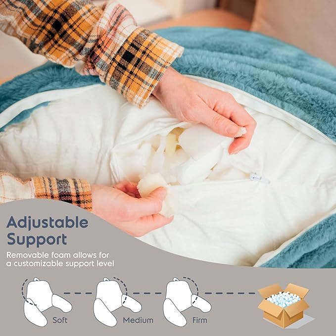 - Ultimate comfort: Experience unparalleled support while reading or watching TV with our backrest pillow for bed, designed to provide the perfect angle for relaxation and enjoyment. Featuring a plush, cozy faux fur cover, it adds an extra layer of luxury and comfort, making it ideal for both adults and kids.