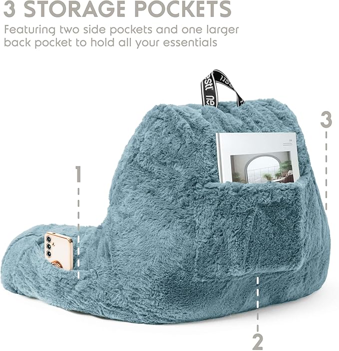 - Bonus Pockets: Featuring 3 convenient pockets, this bedrest pillow helps you create a cozy nest without needing to get up once you're settled in. The 2 small side pockets are perfect for storing your remote or phone, while the larger back pocket is ideal for magazines, books, or a tablet.