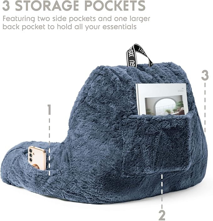 - Bonus Pockets: Featuring 3 convenient pockets, this bedrest pillow helps you create a cozy nest without needing to get up once you're settled in. The 2 small side pockets are perfect for storing your remote or phone, while the larger back pocket is ideal for magazines, books, or a tablet.