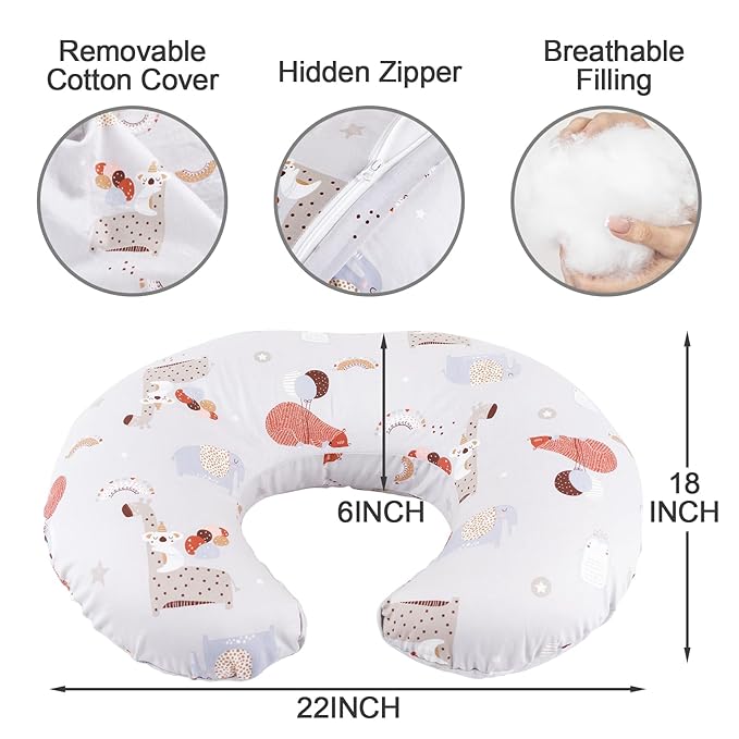 Nursing Pillow, Breastfeeding Pillows with Standard Size Removable Cover, Breast Feeding Pillow with Breathable Filling, Ergonomic Nursing Essentials for Bottle and Breastfeeding- Animal Gray