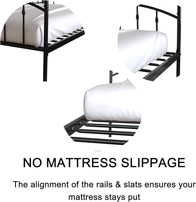 - 【No Box Spring Needed】The 22 sturdy metal slats provide solid mattress support, eliminating the need for a box spring. This structure helps prevent sagging and ensures a comfortable, supportive sleep surface