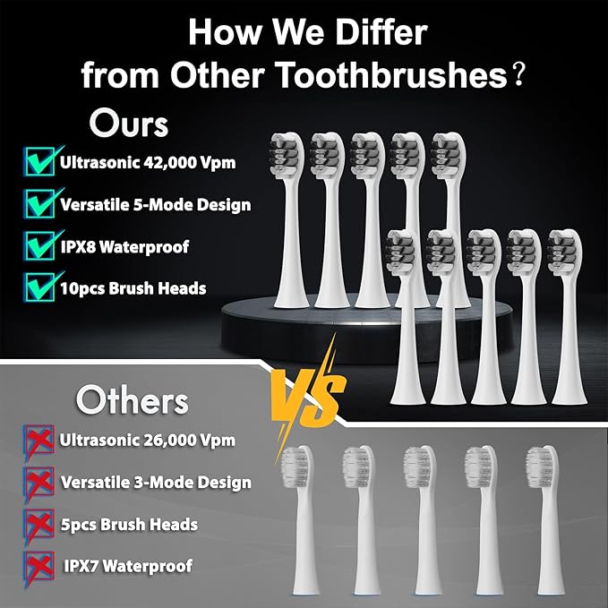 - Long-Lasting Performance: This comprehensive set includes 10 replacement brush heads (each lasting up to 3 months), a travel case, USB charging cable, user manual, and stand, ensuring hassle-free oral care for up to 30 months without constantly needing to buy new brush heads.