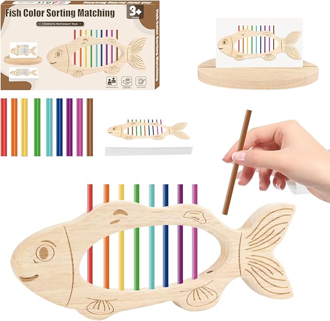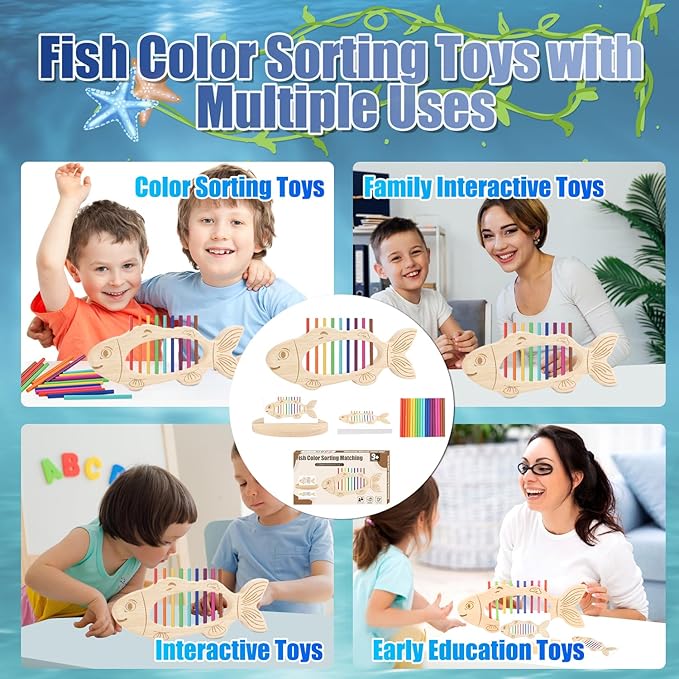 - Multi-Purpose Montessori Color Sorting Toys: Our wooden fish-shaped color sorting toys can be used as parent-child interactive toys, friend interactive toys, kindergarten toys, early childhood education center toys, which can exercise children's hand-eye coordination, fine motor skills, color recognition, problem-solving skills, and can exercise children's logical thinking ability