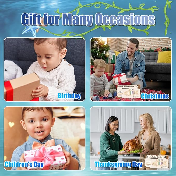 - Fish Stacking Toys for 3+ Years Old: Our upgraded fish-shaped Montessori color sorter is very suitable for 3-4 5 6 7 8 9 10 years old boys and girls, and is suitable as a gift for birthdays, Children's Day, Thanksgiving, Easter, Christmas, Halloween and other festivals. You can also place the wooden fish color sorting toys on the table as decorative ornaments