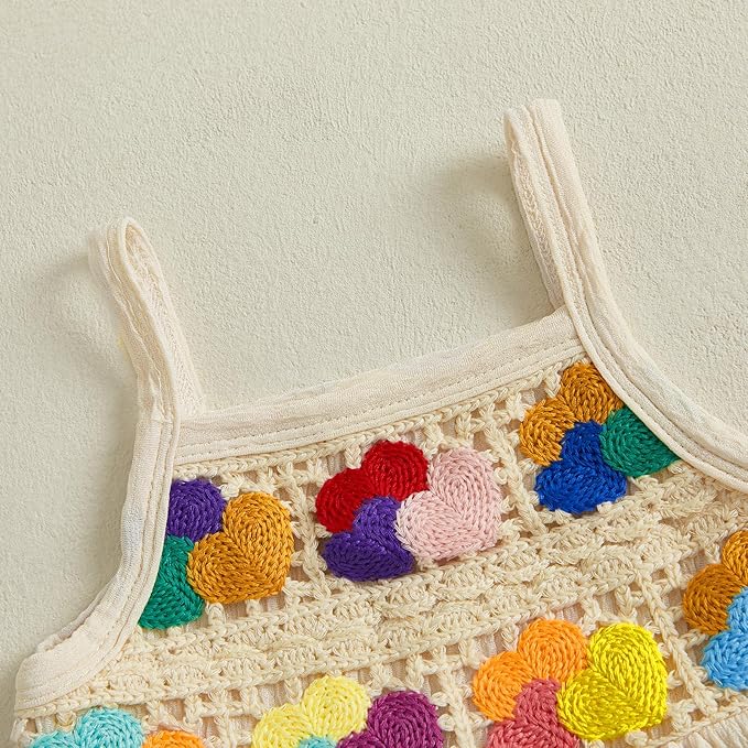 6M-5T Little Girl Clothes Boho Outfit Straps Hearts Shirts Cami Tank Tops Wide Leg Pants Baby Girl Summer Clothes