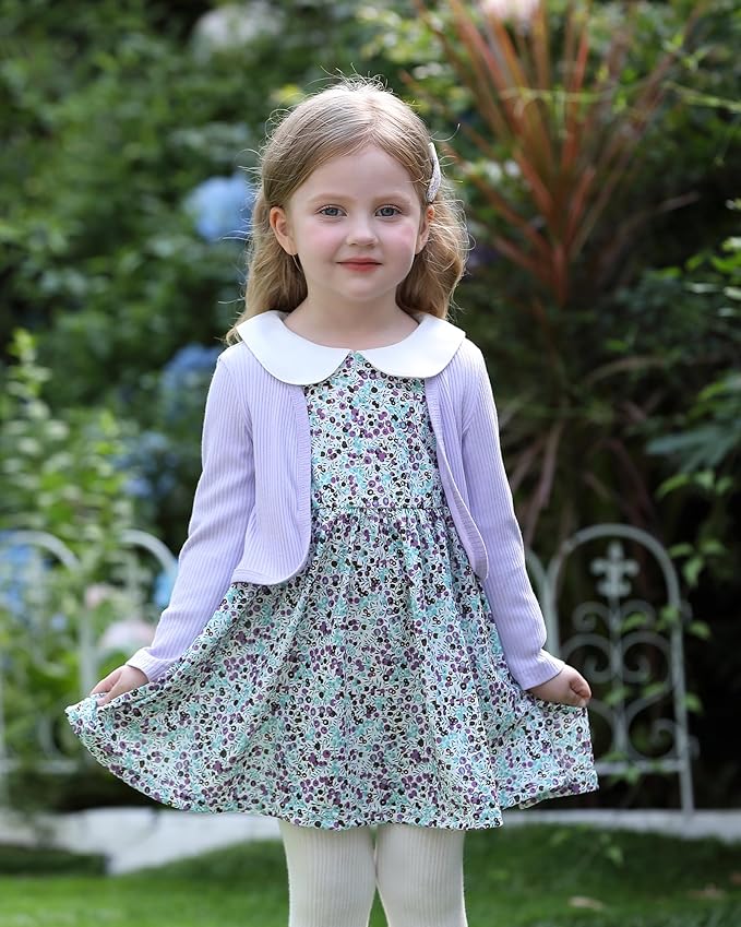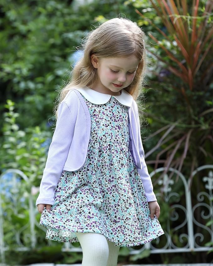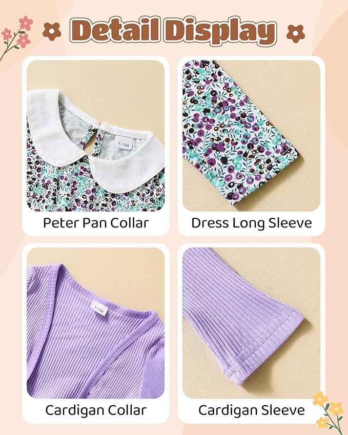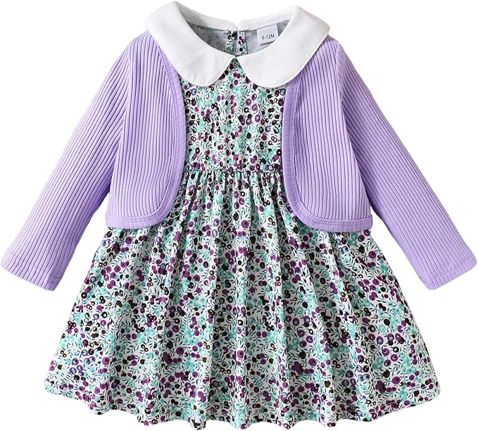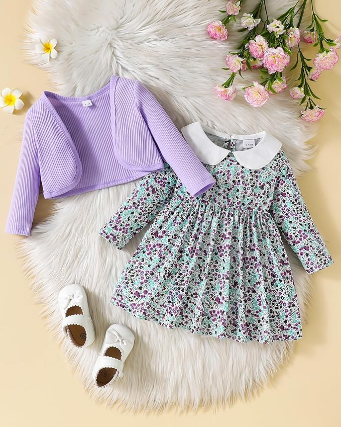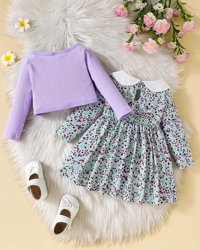 - Cute Design: Toddler girl dress with floral patterns is stylish and adorable,and includes a long sleeved floral print dress and a solid cardigan coat, adding charm to your baby
