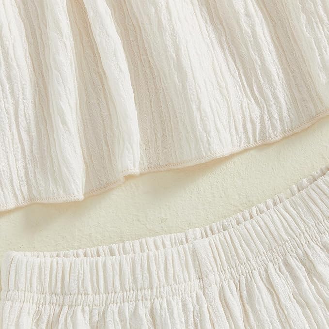 - Feature: Summer baby girl clothes,adorable baby girl outfit kids clothes,cami Tops: sleeveless, spaghetti straps, square neck, 3D flower front, ruffle hem shirts dress tops, Pants: Elastic waistband, wide leg, solid color, full-length kids girl outfit
